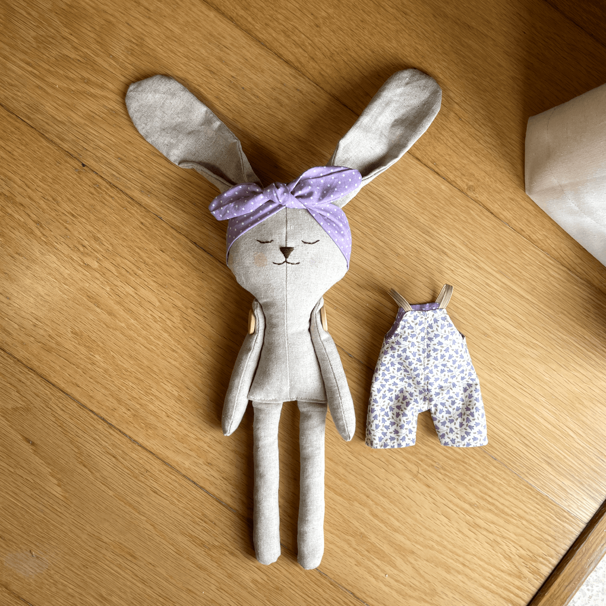 Feita à mão desde o seu corpo até às peças de roupa e acessórios (com moldes desenvolvidos por mim), contém pormenores bordados à mão.